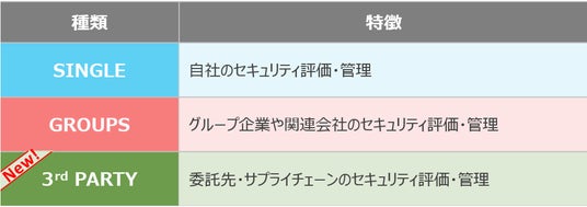 Secure SketCHは、Web上で設問に回答することで、自社等の情報セキュリティ対策状況を診断・可視化し、必要なセキュリティ対策の把握と推進に役立てることができるサービスです。これまでSINGLE(1社の評価・分析を想定)やGROUPS(グループ会社の統制を想定)[v]といったプランを提供しており、委託先管理は既存のプランの中でも可能でしたが、委託先管理に特化した3rd PARTYを追加したことで、各社の課題感に合わせたプランを選択できるようになりました。