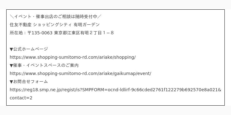 URL:https://www.shopping-sumitomo-rd.com/ariake/shopping/