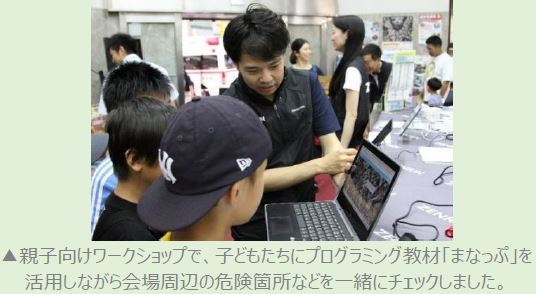 ・まなっぷ:地図を活用したプログラミング教材で、お子様がパズル感覚で避難マップをつくることができ、防災教育にもご利用いただけます。