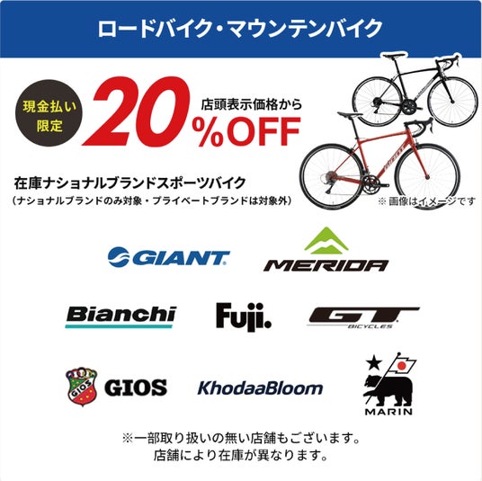 また、オープンを記念して、一部スポーツバイクが店頭表示価格から20%OFFでご購入いただけます。