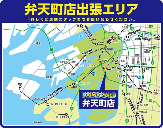ダイワサイクル弁天町店 店舗情報:https://www.daiwa-cycle.co.jp/shop/bentenchou