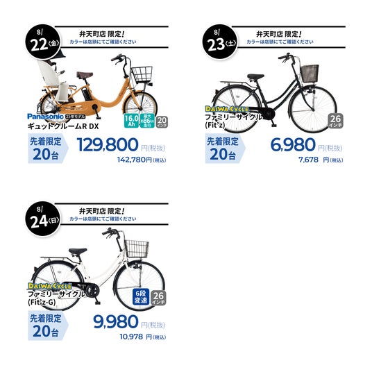 オープンを記念して、8月22日(金)から8月24日(日)までの3日間は超特価オープニングセールを実施いたします。
