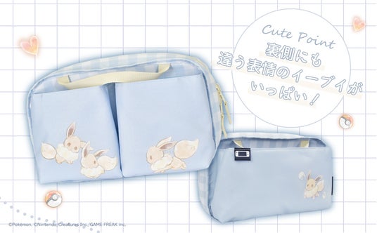 Nintendo Switch(TM) 2 本体と小物類がまとめて収納でき、表と裏で収納量が変わるバッグです。もふっとしたタッチのイーブイがあしらわれた、あわい色合いのデザインです。2025年9月発売予定。