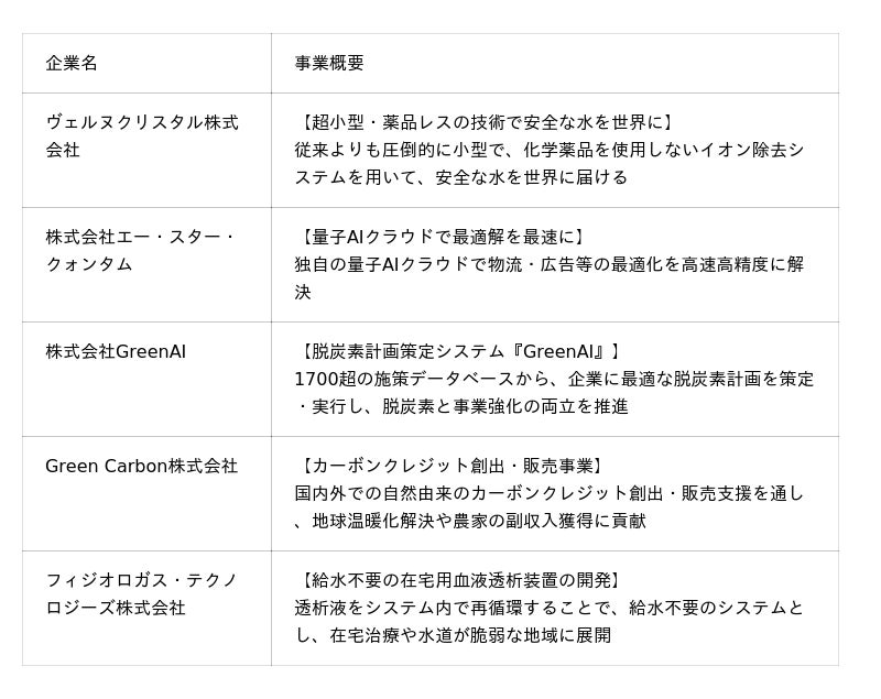 【三菱UFJキャピタル賞兼優秀賞:1社】(事業支援金200万円の提供)