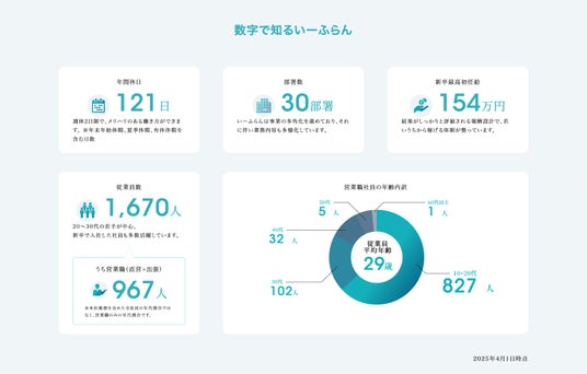 いーふらんでは、「社員幸福満足度日本一」を目指し、その他にも様々な福利厚生制度を導入しています。今後も、社員が安心して長く働ける環境づくりに努めてまいります。