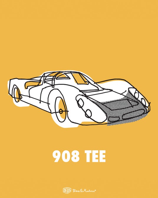 美と希少性、複雑な技術と原始的な力、対比的な表現がもたらす優美なデザイン。強さと美しさを合わせ持つまるでワイルドな野生動物のような存在、それこそがポルシェ908。ルマンでの優勝は達成できなかったが、秀逸なフォルムに注目してほしい。Carby Tuckwellが見事に描いたポルシェ908のグラフィックを、100%オーガニックコットンのレギュラーフィットTEEにデザインした。