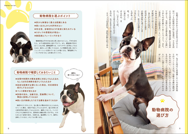 通常の病気解説だけでなく、「ボストン・テリアに多い病気」をピックアップしているので、よりボストン・テリアという犬種への理解が深まります。