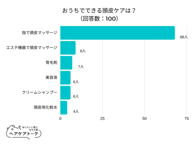 「おうちでできる頭皮ケアは?」とアンケート調査した結果、1位は『指で頭皮マッサージ』でした。