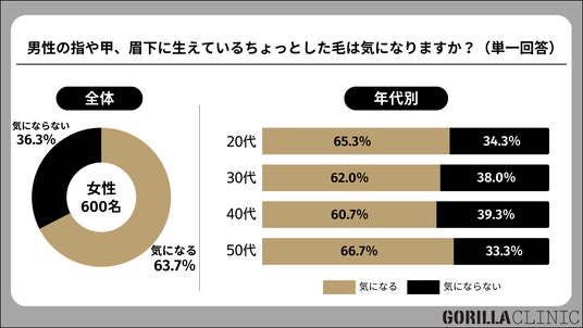 そこで、全国22院展開する男性専門の総合美容医療「ゴリラクリニック」(医療法人社団十二会/東京都新宿区、稲見文彦総院長、以下「当院」)は、2025年3月13日から3月16日の4日間、20~50代の男女1,200名(男女ともに600名ずつ)を対象に【男性の体毛に関する意識調査】を実施(インターネット調査)。