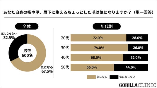 「自分自身のちょっとした毛が気になる」と回答した男性は「67.5%」と、7割近くもいることが判明しました。