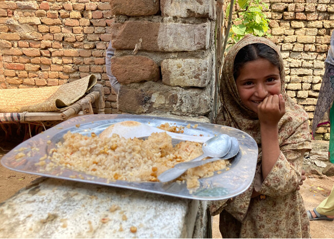 AARが支援しているのは、日雇い労働者など貧困世帯が多い地区です。家々を訪ねると、ロティ(パン)やダール(豆カレー)を食べている家族を見かけましたが、野菜や卵、肉類など栄養価の高い食事は望めず、「育ち盛りの子どもたちに何か食べさせたくても、おカネがなくて買えない」と、袋入りのポテトチップスだけを与えられている子どももいました。洪水被害が貧困にあえぐ人々の苦境にさらに追い打ちを掛けているのです。
