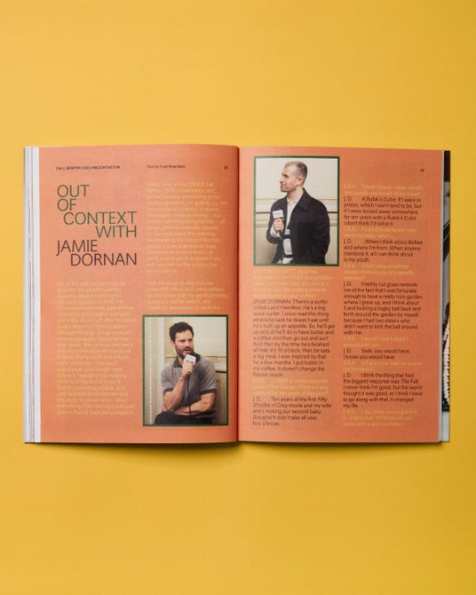 さらには、エヴァン・ロス・カッツが俳優ジェイミー・ドーナンに、パンプキンスープやパリでのパーティーについて、じっくりと尋ねています。締めくくりに、手仕事のよろこびを読者と分かちあうべく、ロエベが手がけた1977年式フォード フィエスタの特別仕様車の紙製マケットを用意しました。自宅で組み立てられるこのキットは、アトリエの遊び心あふれる実験であり、もう一つの「カルト・クラシック」といえます。