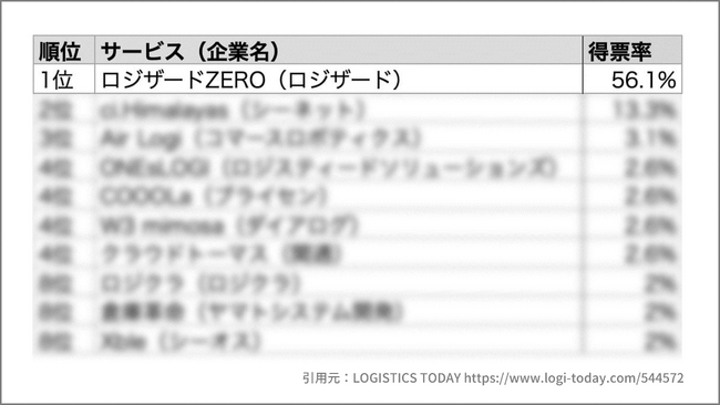 国内最大の物流ニュースサイト「LOGISTICS TODAY」が2023年5月22日に発表した「クラウド型WMS導入ランキング」によると、クラウド型在庫管理システムのリーディングカンパニーであるロジザード株式会社(東京都中央区、代表取締役社長:金澤 茂則、以下:ロジザード)が提供するクラウド倉庫管理システム(WMS)「ロジザードZERO」が導入トップであることがわかりました。