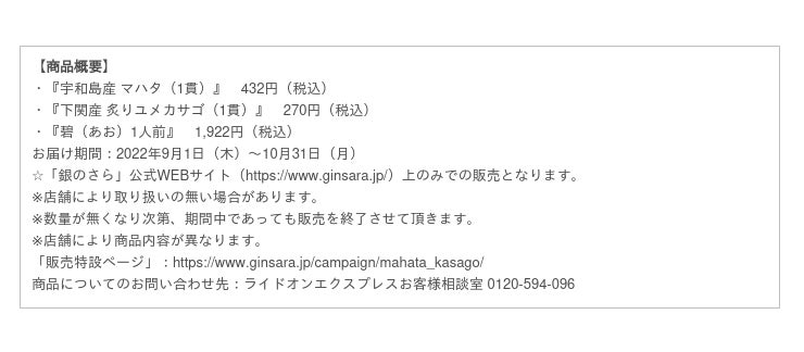 ※販売特設ページ:https://www.ginsara.jp/campaign/mahata_kasago/