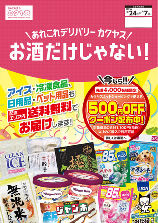 カクヤスでお酒以外の商品をデリバリーしていただくことにより、お客様の日常生活をさらに快適に便利にしたいという想いから、「お酒だけじゃない!キャンペーン」を実施します。