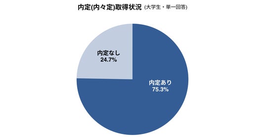 - 大学生全体の75.3%が内定(内々定)を取得、2026年卒学生における同時期の調査から増加(+3.0pt)