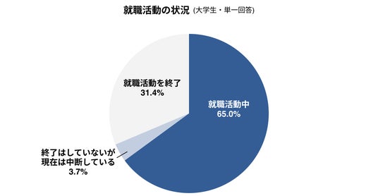 - 31.4%の大学生が就職活動を終了している