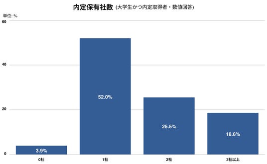 - 内定取得者のうち、44.1%が複数の内定を保有している