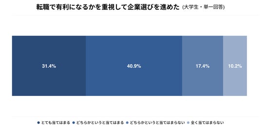 - 72.3%の大学生が「転職で有利になるかを重視して企業選びを進めた(進めている)」