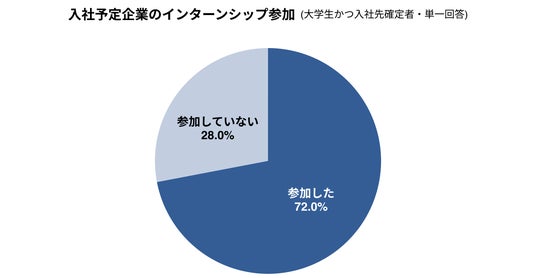 - 入社先が確定している大学生のうち、72.0%が入社予定企業のインターンに参加している