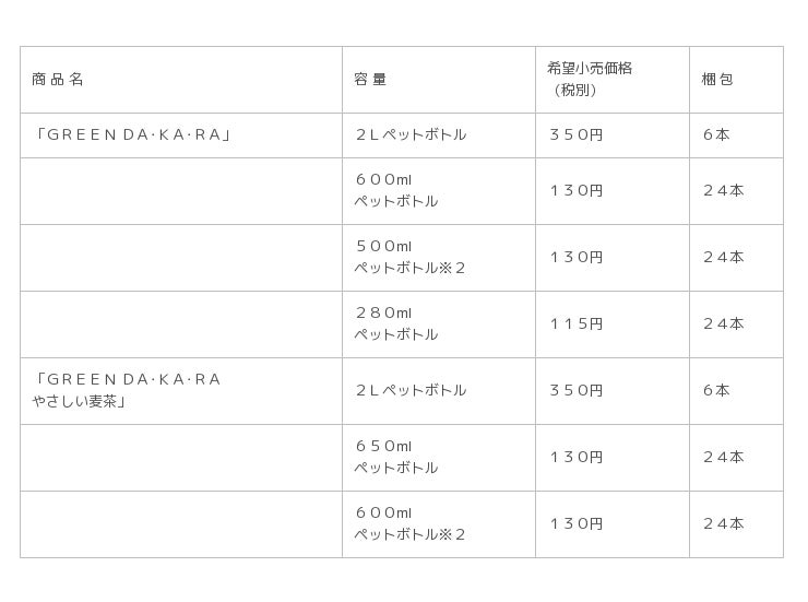 ▼サントリー「GREEN DA・KA・RA」「GREEN DA・KA・RA やさしい麦茶」商品概要