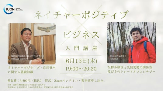今回、日本自然保護協会(NACS-J)が事務局を担う国際自然保護連合日本委員会(IUCN-J)では、これらの社会情勢を加味して、ビジネス×自然資本の切り口で、ネイチャーポジティブ・自然資本に関しての基礎的な知識に関するセミナーを開催します。