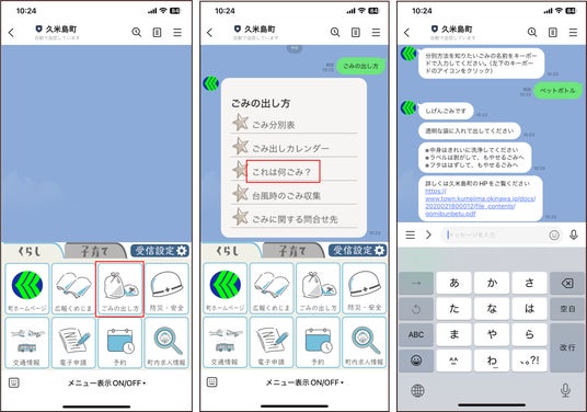LINEによるスピーディーな町政情報の発信を目指してスマート公共ラボを活用し、ごみ情報や防災情報、子育て・イベント情報など様々な町政情報をお届けするサービスが開始されました。