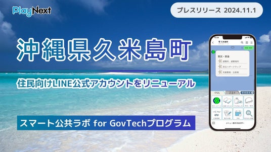 プレイネクストラボ株式会社(本社:東京都品川区、代表取締役:柏 匠、以下 「プレイネクストラボ」)の提供する「スマート公共ラボ for GovTechプログラム」が、沖縄県久米島町(以下「久米島町」)のLINE公式アカウントに採用され、2024年11月1日(金)より一般公開したことをお知らせします。