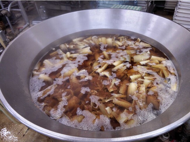 石井食品では、千葉県八千代市、京都府京丹波町、佐賀県唐津市の 3 エリアに製造工場があり、各 工場に近いエリアの旬の筍を使用し、その土地の特長を生かした商品づくりをしています。 『千葉大多喜 筍ごはん まぜごはんの素(2 合用)』を製造している八千代工場では、筍の貴重な「ひ め皮」からもだしを取っており、筍の風味を最大限に引き出しています。『京都丹波 筍ごはん まぜごはんの 素(2 合用)』を製造している京丹波工場では、筍の表面をバーナーでひとつひとつ焼くことで香ばしさと 甘さを引き出しています。また、崩れやすい筍はていねいに人の手でカットをしています。『佐賀唐津筍ごは ん まぜごはんの素(2 合用)』を製造している唐津工場では、九州地方ならではの食べ方を味わっていた だきたく、⽚口いわしと鶏がらの合わせだしを使用し、筍に佐賀県産の鶏肉を加えています。