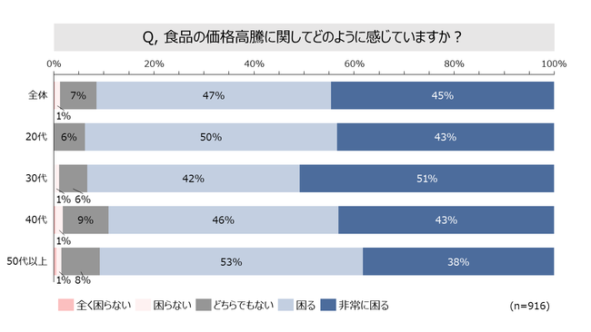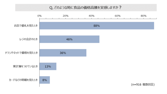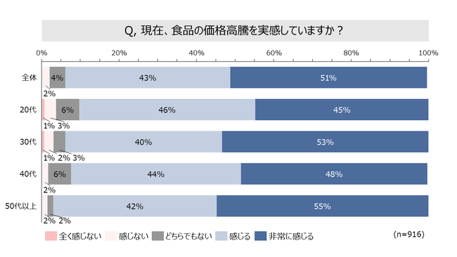 1. 価格高騰を94%が実感、お店で値札を見たときに感じる。