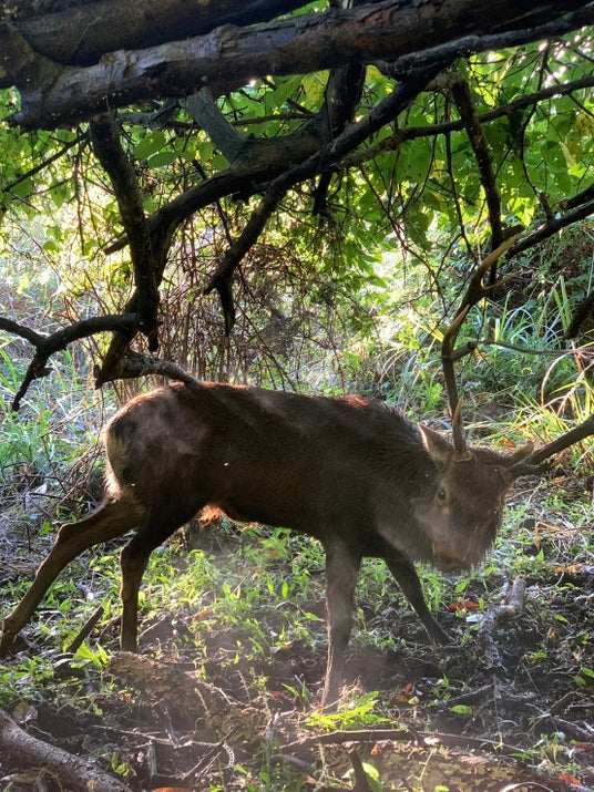 現在、鹿の個体数増加により、下草や樹木の若芽が食べ尽くされ、森林環境が悪化しています。