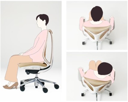 背もたれのリングフレームは、樹脂の特性を活かして新たに開発されました。中央のセンターフレームは厚く設計することで、身体をしっかりと受け止めます。左右に枝分かれしたサイドフレームは、薄い形状にすることで、適度なベンディング性能を生み出すとともに、座る人の体の動きに追従します。さらに、高い透過性を誇り、弾力性に優れたメッシュ生地を使用することで、これまでにないしなやかさと安定感のある快適な座り心地を実現しています。
