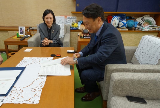 (左: EcoFlow 危機管理対策本部長 長浜 修、右:東京都江東区長 大久保朋果様)