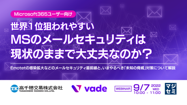 マジセミ株式会社は「世界1位狙われやすいMSのメールセキュリティは現状のままで大丈夫なのか?」というテーマのウェビナーを開催します。