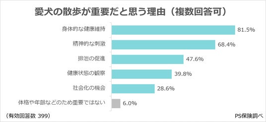 ・愛犬の散歩が重要な理由は、「身体的な健康維持」が8割超。