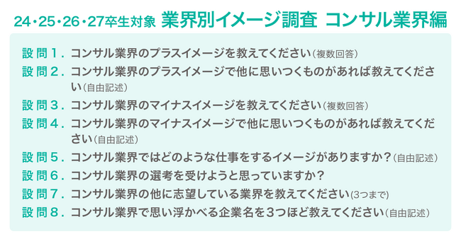 24・25・26・27卒対象 業界別イメージ調査 コンサル業界編 設問構成