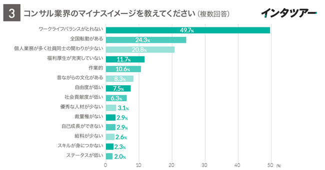 設問3. コンサル業界のマイナスイメージを教えてください(複数回答)