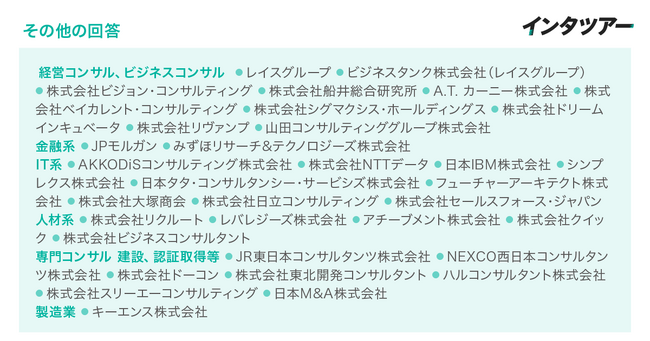 設問8では、コンサル業界で知っている企業名を3社挙げてもらいました。