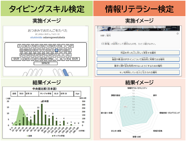 2022年度より『らっこたん』を使用した「全国統一タイピングスキル調査」を実施してきましたが、「情報活用能力検定」では10分間の調査でタイピングスキルに加えて、情報の判断など、総合的な情報活用能力の習熟度を計ることができます。
