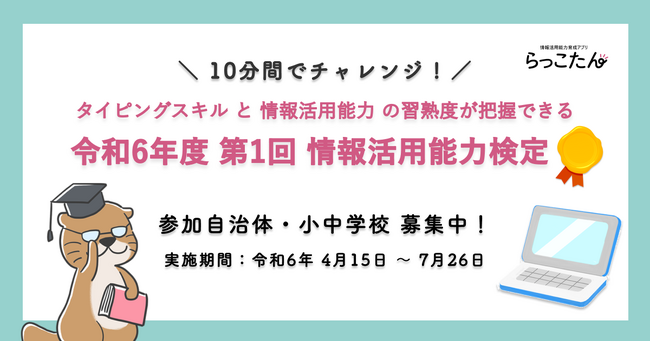 自治体向けサービスを開発する株式会社ミラボ(本社:東京都千代田区、代表取締役:谷川一也、以下「ミラボ」)と、情報モラル教育・プログラミング教育を手がける株式会社教育ネット(本社:神奈川県横浜市、代表取締役:大笹いづみ、以下「教育ネット」)は、共同開発したクラウド型デジタルAI教材「らっこたん」を使用した「令和6年度 第1回 情報活用能力検定」の無料参加自治体・小中学校の募集を開始しました。