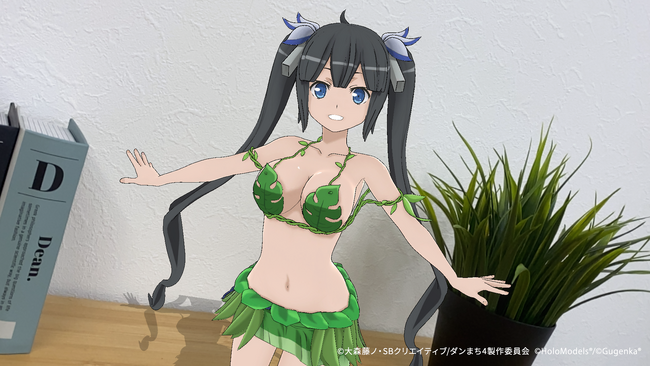 本商品では、HoloModels専用のMRアプリ(「HoloModels MR βVersion」)をダウンロードいただくことで「Meta Quest 3」などを使用して「ヘスティア」の膝枕をMR体験することができます。更に、通常衣装に加えて付属の水着衣装や録り下ろしシチュエーションボイスを聞きながら膝枕を体験することができます。