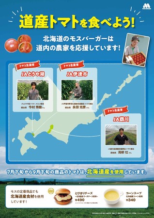 モスバーガーを展開する株式会社モスフードサービス(代表取締役社長:中村 栄輔、本社:東京都品川区)は、2022年7月30日(土)~8月21日(日)の23日間、北海道のモスバーガー47店舗(一部店舗を除く全店舗)で、生のトマトを使った全ての商品に、北海道産のトマトを使用する「道産トマトを食べよう!」を開催します。