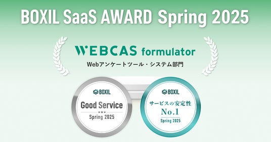SaaSの開発・提供を通して企業や団体のCX向上を支援する株式会社WOW WORLD(ワオワールド/本社:東京都品川区、代表取締役社長:美濃 和男、以下、当社)は、スマートキャンプ株式会社(以下、スマートキャンプ)が優れたSaaS※を表彰する「BOXIL SaaS AWARD Spring 2025」のWebアンケートツール・システム部門において、当社の提供するアンケート・フォーム作成システム「WEBCAS formulator(ウェブキャス フォーミュレーター)」が「Good Service」に選出され、同時に「サービスの安定性No.1」を獲得したことをお知らせいたします。