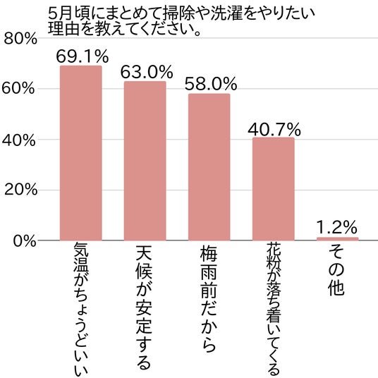 5月頃にまとめて掃除や洗濯をしたいと考える方が多いようですが、その理由についても尋ねました。