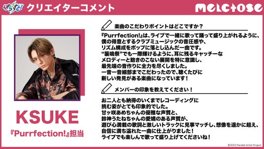 株式会社ClaN Entertainment(本社:東京都港区、代表取締役社長:大井 基行、以下ClaN)は、リアルとバーチャルでパラレルに活動するVTuberプロジェクト「ぱらすと!」のユニットから、オリジナル楽曲第2弾「Dance Crazy Night(Signite)」「Incompletion(Sunglows)」「Purrfection!(melctose)」のリリースをお知らせします。