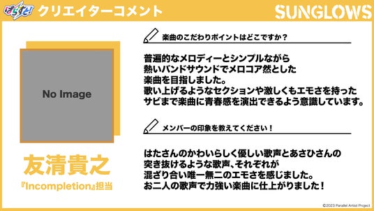 Vocal:Sunglows(常磐木はた、柑原あさひ) / Sunglows(Hata Tokiwagi、Asahi Kambara)