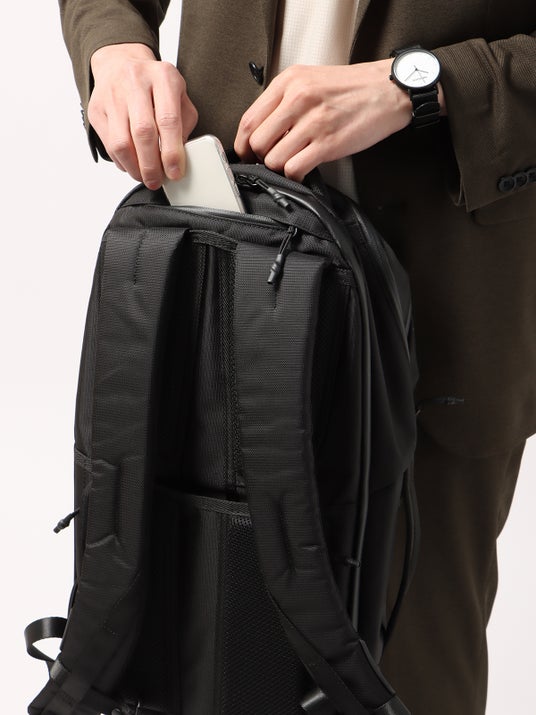 今回は、昨今自由な働き方をしているノマドワーカーや出張の多いビジネスパーソンに向けて商品を企画。ビジネスでもプライベートでも使いやすい立体的なフォルムに加えて、機能面でも撥水や止水性のあるコーティングファスナーを採用することで、天候なども気にせずに使えるバックパックを目指しました。そんな使い回しがしやすい機能的なバックパックを実現させるために、エースさんと共同開発を行い完全オリジナルバックパックが完成。携帯専用ポケットなど16カ所の多収納ポケットが様々な用途で使用できます。