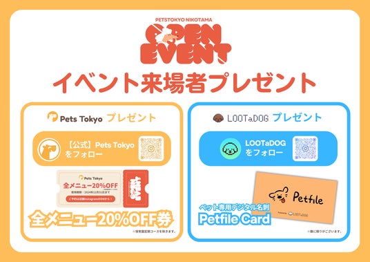 - オープン後に使用できるPets Tokyo二子玉川店「全メニュー20%オフ券」をプレゼント