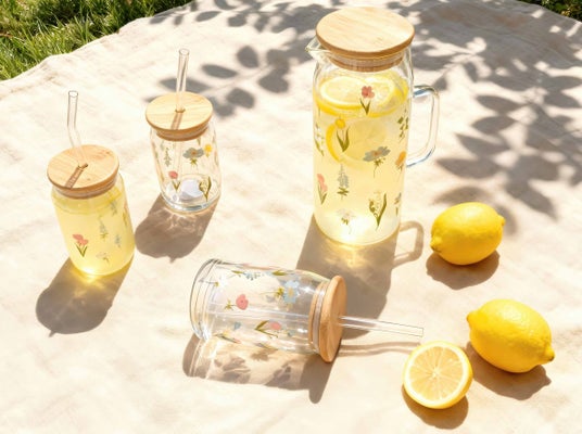 透明なガラスが爽やかさを、ウッドの蓋と様々なお花が春のぬくもりを表現。キッチンに春をお届けします。