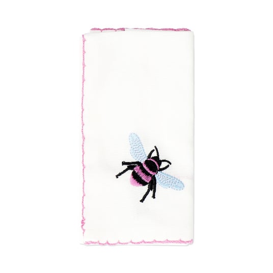 お花と相性の良い蜂の刺繍がほどこされたナプキンで優雅なランチを。